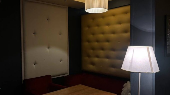 Коктейльный бар с яркими напитками и разнообразным меню в интерьере классического паба